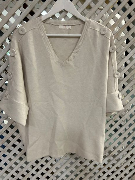 Kyla Knit with Half sleeve & Buttons on the shoulder Beige
