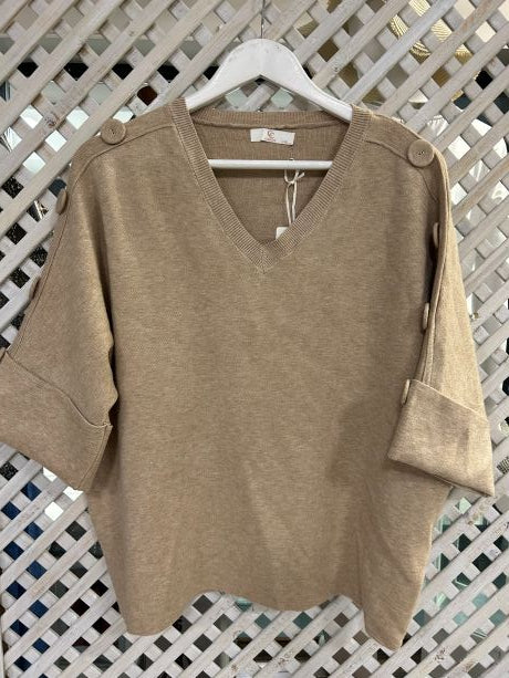 Kyla Knit with Half sleeve & Buttons on the shoulder Caramel