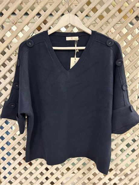 Kyla Knit with Half sleeve & Buttons on the shoulder Navy
