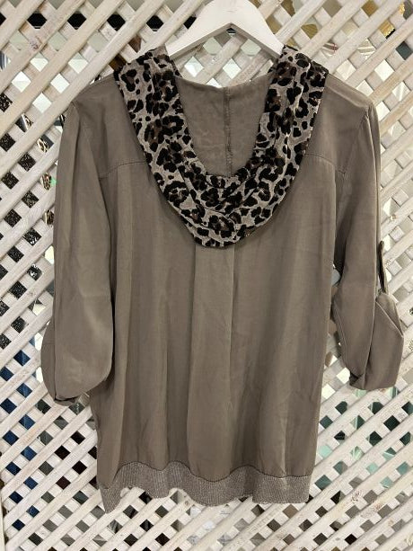 Kyla Long Sleeve Top with Leopard Print & Hood Taupe
