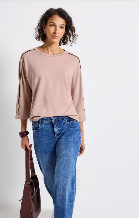 Street One V Neck Silk Look Shirt with Gathered Shoulder