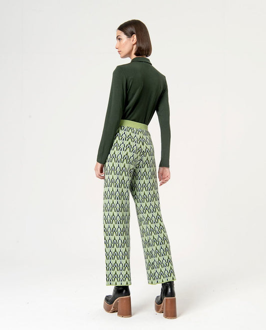 Surkana Knit Trousers with Wide Waist Band Green Mix