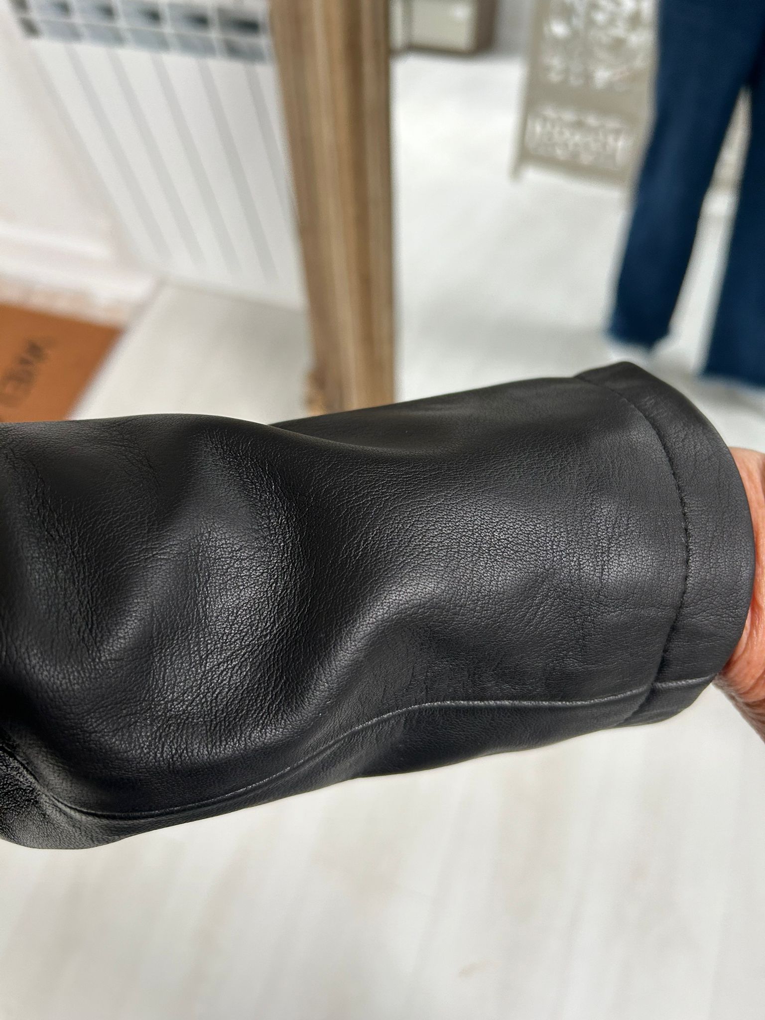 Introducing the Bolongaro Trevor Round Neck Zip Through Leather Jacket in classic black.