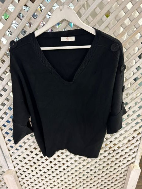 Kyla Knit with Half sleeve & Buttons on the shoulder Black